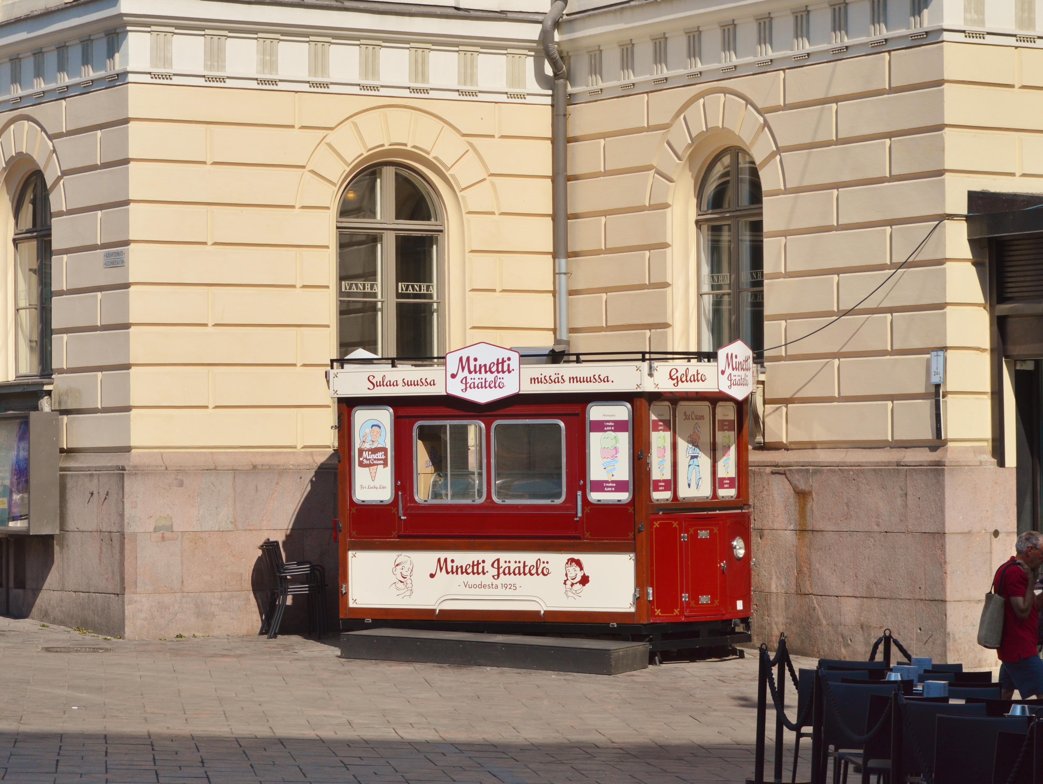 After arriving back at the market square, we took another walk (we really walked a lot!) through a beautiful residential area and the Kaivopuisto park, before reaching Café Ursula‘s seaside terrace, where we sat down and enjoyed a cold beverage and the view. Most people seemed to come here for a glass of champagne or some brunch/ lunch, but we were still too full from breakfast. One of the main attractions was the large crane that stood about a hundred meters away, and that people could bungee-jump from. So if you’d like to get an adrenaline kick in Helsinki, this seems to be the place (not for me though, thanks!).