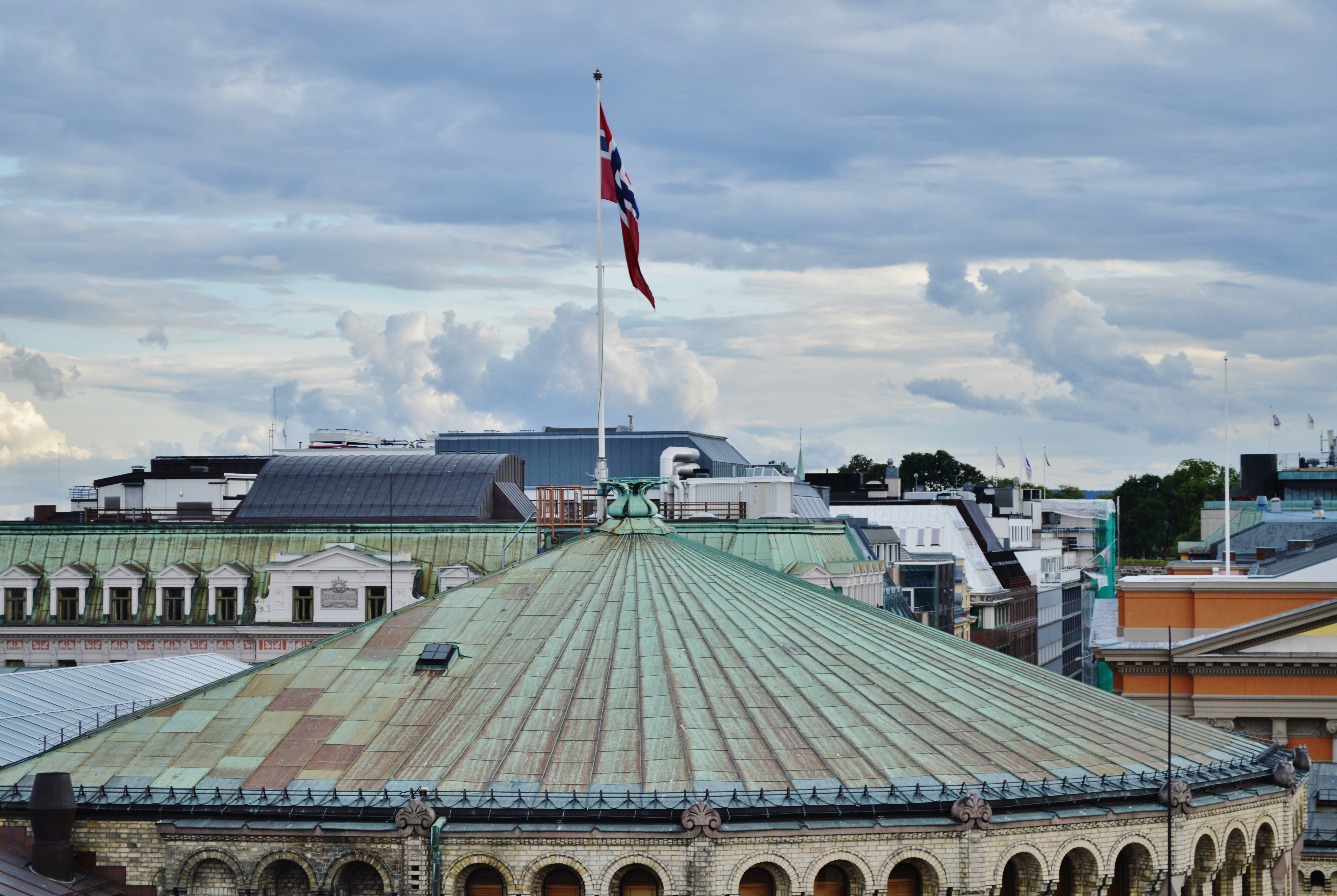 We strolled back down Karl Johans gate and to the opera house, which is located right at the waterfront. A very fascinating arcitectural structure, and a stark contrast to the otherwise very classic, old-timey Oslo building panorama. We climbed all the way onto the top (not that easy when you’re still not feeling 100%!) and enjoyed a nice view over the city center and up to the ski jumping hill Holmenkollen for about five seconds, before it started to rain, so we decided to head back.