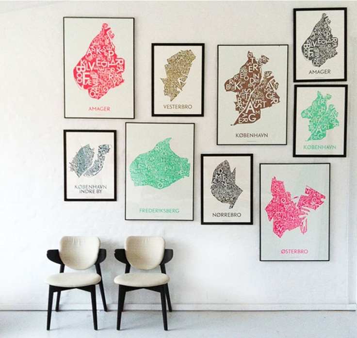 The “map cartel” is the latest up-and-commer in Copenhagen and Denmark. What they do is pretty simple: they make stylized, typographic maps of Copenhagen and its neighborhoods (like Vesterbro, Nørrebro etc.) with the names of the neighborhoods printed on them. Their minimalistic design comes in different colors and they have extended their portfolio to include other big Danish cities as well. They even have a special editions for Germany, Berlin and Paris! All their designs can be found in the shop on their website (www.kortkartellet.dk) as well as on Facebook and Pinterest. But they are also all over design and interior stores in Copenhagen, so next time you’re around, keep an eye out for them! I think I’ll go with a simple black-and-white one of Copenhagen for my picture wall!