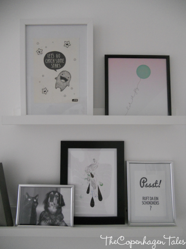 On the other side, we have my lovely “YapYap” print, a funny postcard in German (to balance out the Danish! It reads “Shh, is that a chocolate cookie calling?”) and a picture of the best pets ever to walk this earth (who both, sadly, passed away). They will always hold a special place in my heart, so I put them up there as well!
