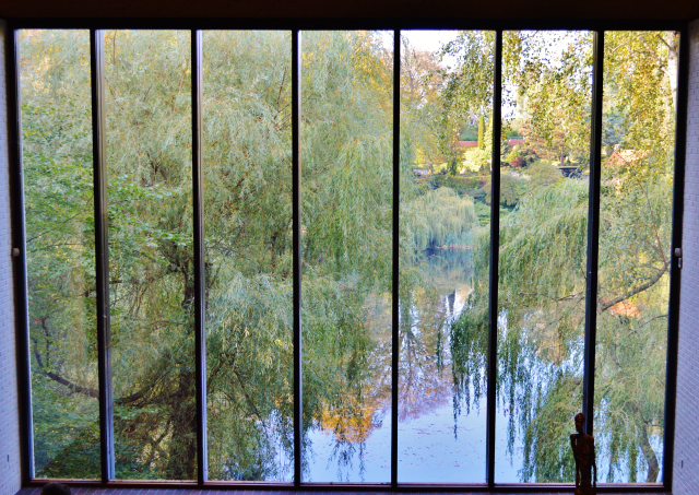 We wandered along the long glass corridors, enjoying the artwork and the amazing views into the park. My favorite room was this beautiful space with two-story high glass windows overlooking a small lake. How cool would it be to host a birthday dinner there?