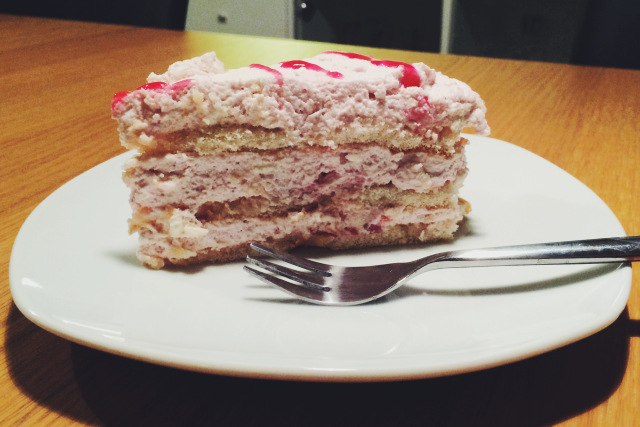 Make sure the “lagkagebunde” are fully cooled off. Add the sugar to the cream and whip until stiff. Add the mascarpone, cinnamon, and some orange zest (about 1 tsp) and stir to combine. Add the cherry sauce and fold in. Squeeze the juice from the orange and mix with the cognac. Moisten the first lagkagebund with about a third of the juice-cognac mix, then spoon on about a third of the cherry cream and distribute evenly. Carefully put the next one on top and softly press down. Repeat the previous steps for the remaining lagkagebunde. Refrigerate for about an hour before serving, and don’t forget to decorate with little Danish flags!