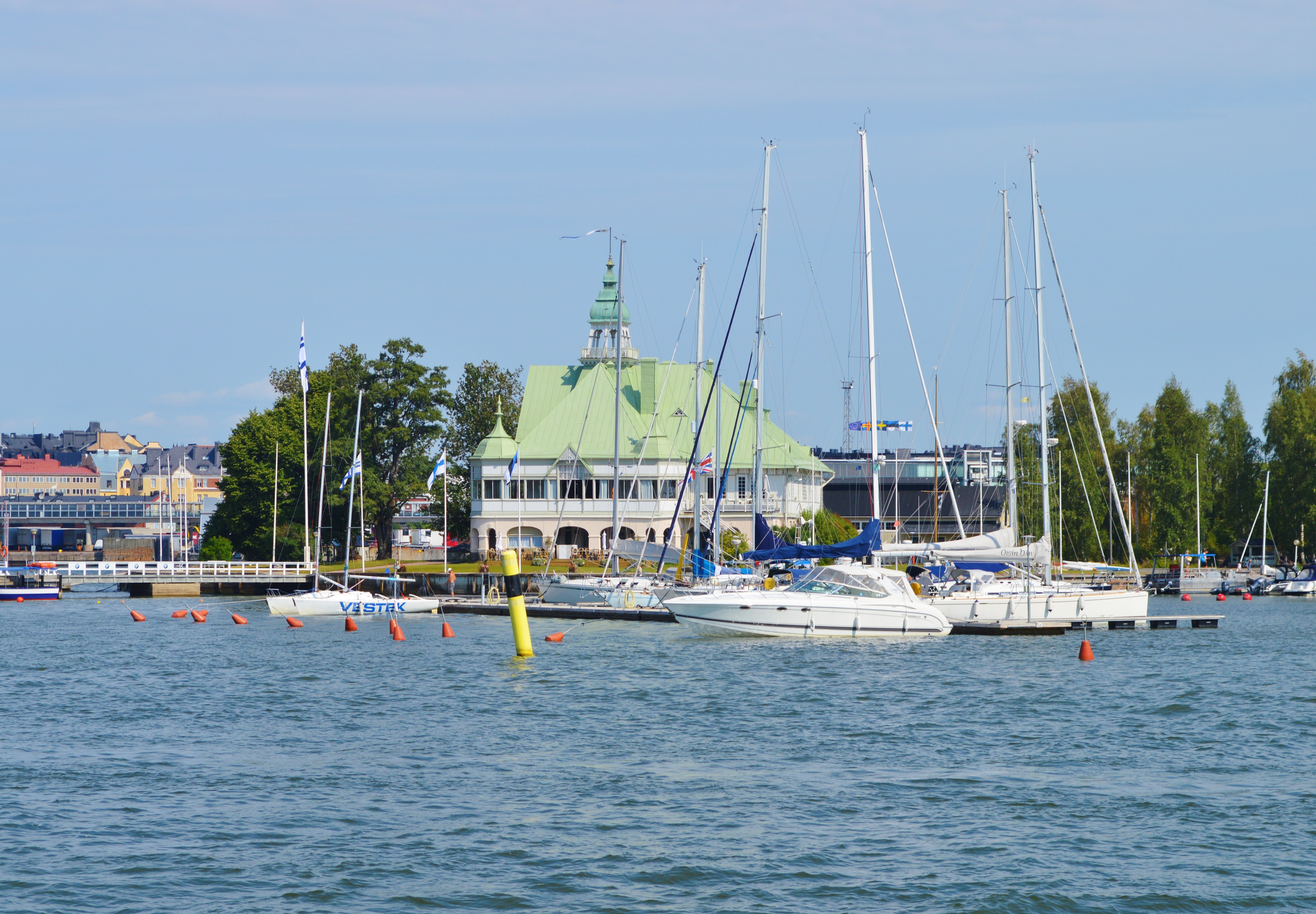 After arriving back at the market square, we took another walk (we really walked a lot!) through a beautiful residential area and the Kaivopuisto park, before reaching Café Ursula‘s seaside terrace, where we sat down and enjoyed a cold beverage and the view. Most people seemed to come here for a glass of champagne or some brunch/ lunch, but we were still too full from breakfast. One of the main attractions was the large crane that stood about a hundred meters away, and that people could bungee-jump from. So if you’d like to get an adrenaline kick in Helsinki, this seems to be the place (not for me though, thanks!).